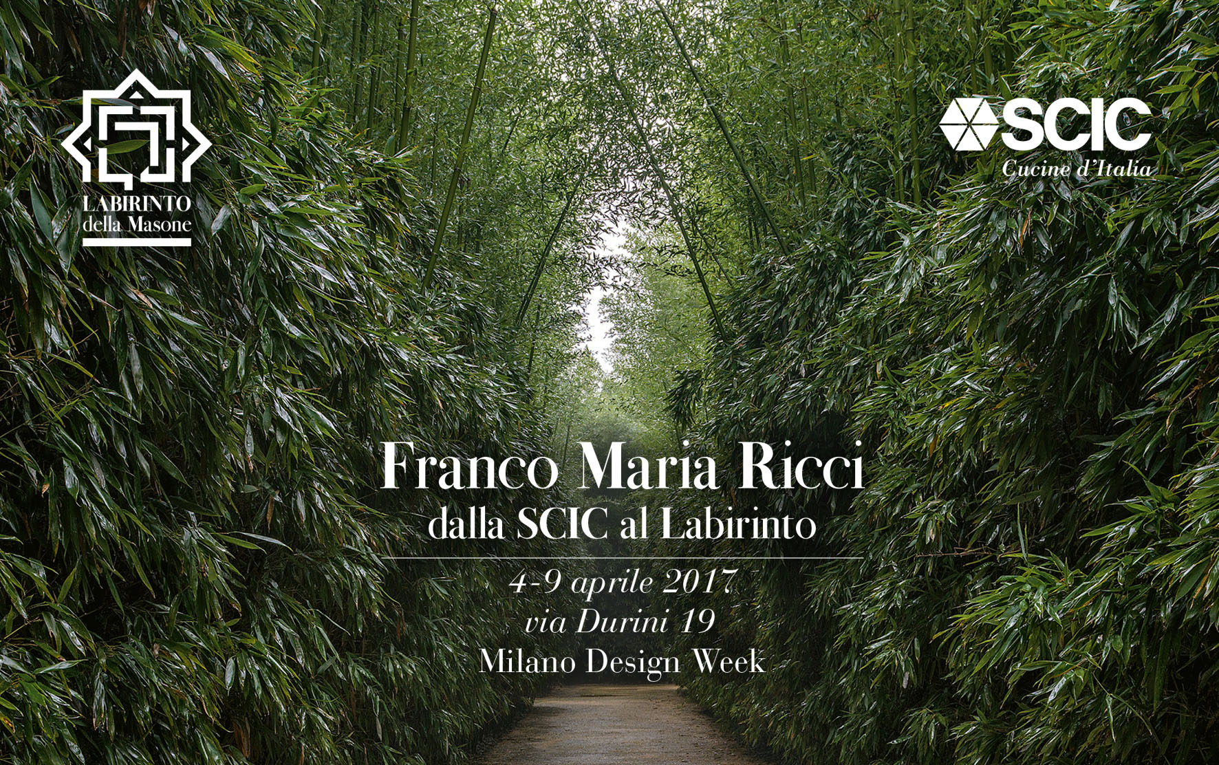 Today, on the occasion of Salone del Mobile 2017, the SCIC showroom hosts an installation created by Franco Maria Ricci to celebrate half a century of collaboration, complicity and friendship. Surrounded by green, each visitor is led to discover the newest SCIC kitchen decorated by artist Giovanni Bressana, which is included in the new โProgramma Labirintoโ collection.