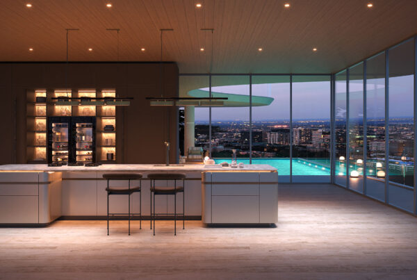 From this idea comes a kitchen that combines technology and essence. The flamed Fossena stone of the top integrates perfectly with the matt taupe lacquered bases celebrating the color-nature combination. The work area is concealed by the top shell with the enclosing block ensuring continuity with the surrounding environment.