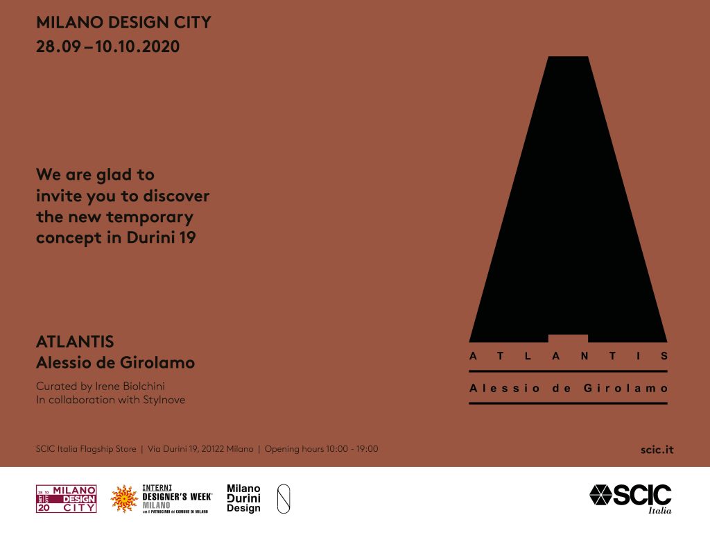 In occasione della Milano Design City 2020 SCIC rinnova la stretta collaborazione fra i migliori artisti della scena contemporanea italiana e il mondo del design, presentando la mostra Atlantis di Alessio de Girolamo. Il progetto SCIC, a cura di Irene Biolchini, porta avanti un’ideale di contaminazioni innovativo per il settore, sviluppato a partire dal 2019 quando l’azienda di design ha lanciato un concept nazionale per chiamare i migliori artisti italiani a dialogare con l’eccellenza dell’arredo.