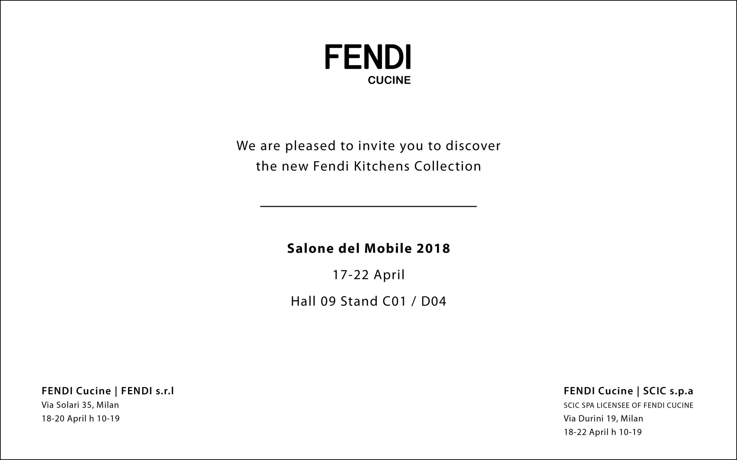 In occasione della 22a edizione di Eurocucina siamo lieti di invitarvi a scoprire le nuove collezioni FENDI Cucine al Salone del Mobile di Milano, dal 17 al 22 Aprile 2018.